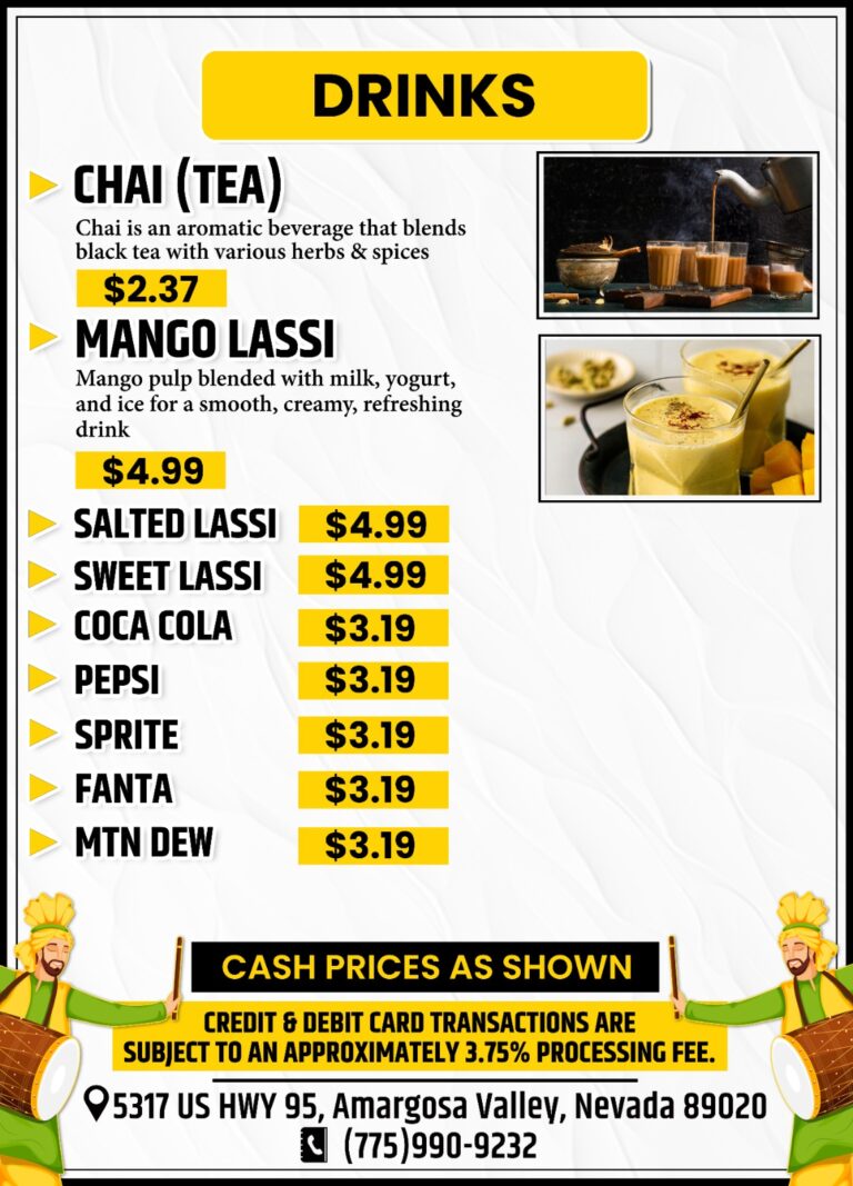 Indian and American flavors under one roof, aromatic curries, comfort classics, and more. Dine in or grab a quick bite at Fort Amargosa.